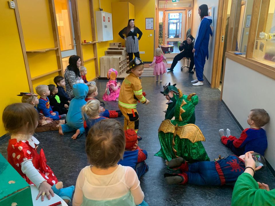 Það er búin að vera mikil stemmning hjá okkur í Austurkór í dag enda Öskudagurinn tekinn með trompi. Börn og starfsfólk mætti í allskonar búningum, náttfötum eða furðufötum í morgun. Kötturinn var síðan sleginn úr tunnunni við mikinn fögnuð barnanna. Því næst var haldið öskudagsball þar sem var dansað, hlegið og gantast. Í hádeginu var svo sett upp pylsusjoppa þar sem börnin gátu bæði fengið að afgreiða í sjoppunni og koma að kaupa sér pylsu til að gæða sér á í hádeginu. Það er því óhætt að segja að börnin eru alsæl með daginn.