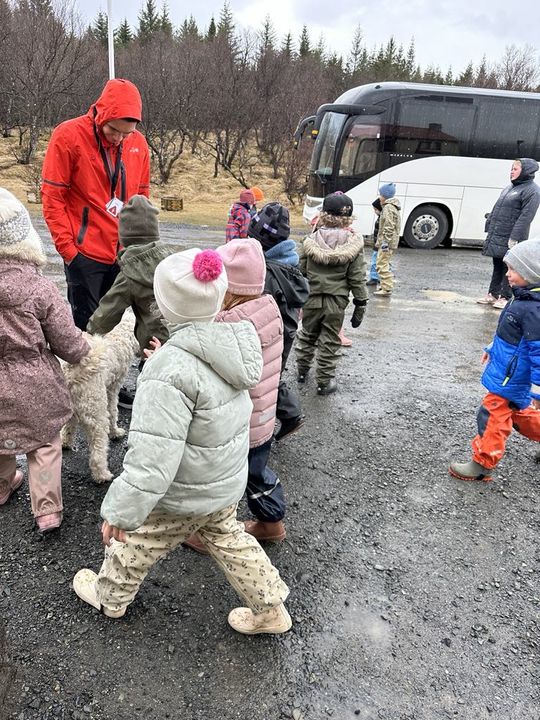 Í dag fóru elstu börn í útskriftaferð í Vatnaskóg. Farið var af stað klukkan níu í morgun og deginum eytt í Vatnaskógi. Þar var farið í gönguferð, bátsferð og leikið í hoppuköstulum. Krakkarnir fengu svo að gæða sér á pizzu í hádeginu og köku í kaffinu áður en farið var af stað heim. Bæði starfsfólk og börn voru mjög ánægð með ferðina þrátt fyrir mikla rigningu.