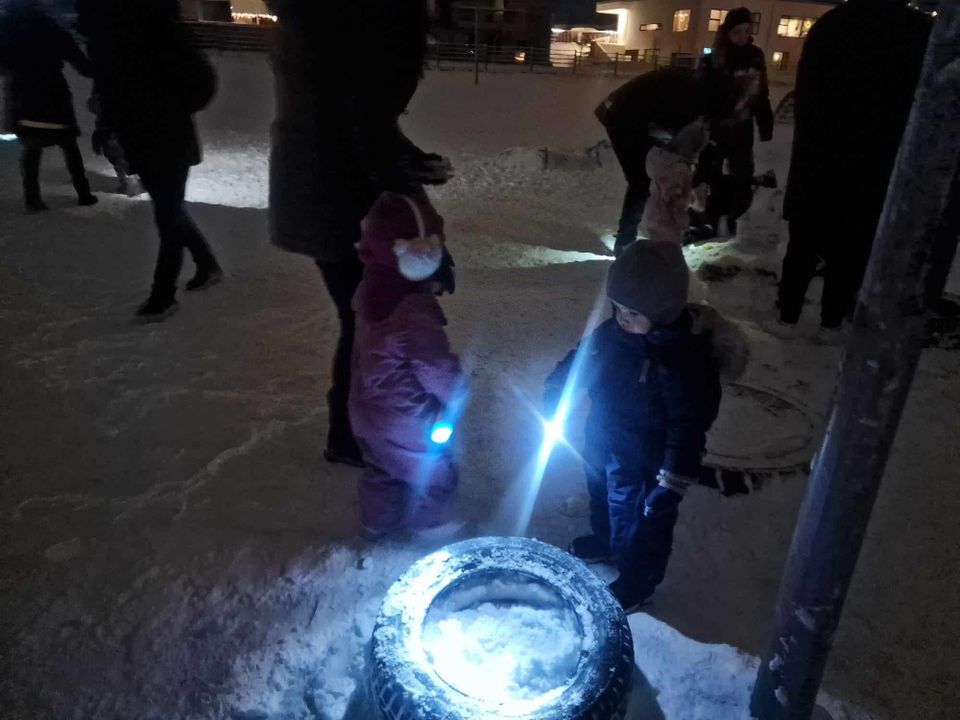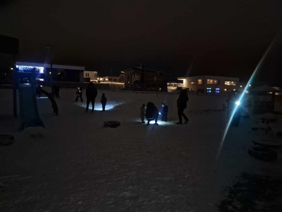 Í morgun héldum við venju samkvæmt upp á dag myrkurs. Veðrið var dásamlegt, kalt og stillt. Þá var nú gott að fá sér kakóbolla eftir að vera búin að leita að endurskinsmerkjum um allan garð.