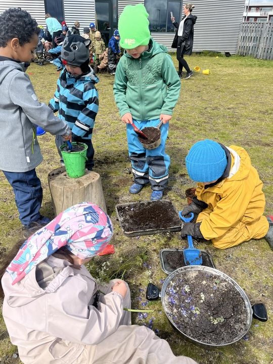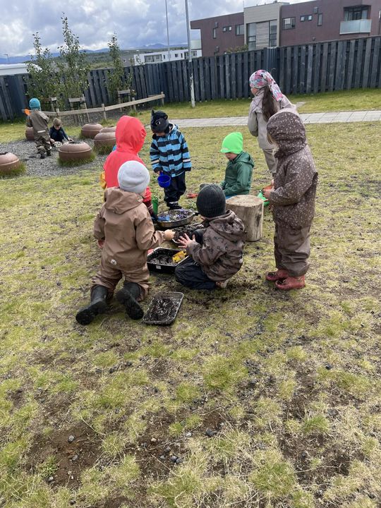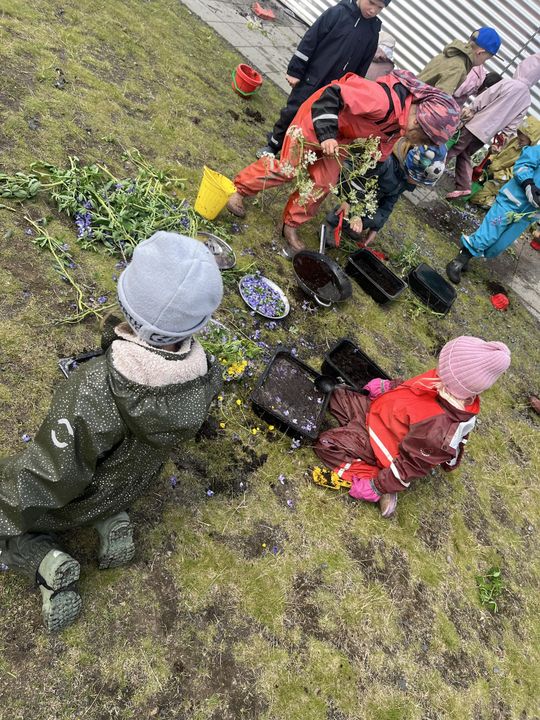 Í gær héldum við upp á Alþjóðlega drullumallsdaginn í leikskólanum 🪴Markmiðið með honum er að efla samfélagsvitund og þakklæti fyrir umhverfinu í kringum okkur og efla tengingu milli allra barna á jörðinni. Hvað er betra en að gera það í gegnum jörðina sjálfa og nýta moldina. Börnin eru mjög hrifin af þessum degi. Þeim fannst mjög skemmtilegt að leika með fullt af mold, vatni, blómum og öðrum efnivið í algjörri núvitund í góða veðrinu.🥰